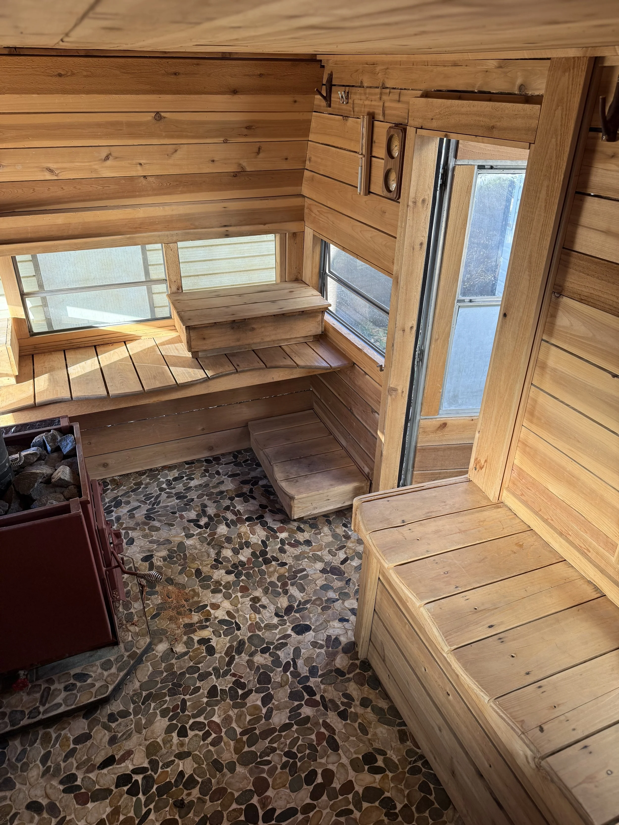 We provide a sauna and cold plunge that fit 8 people comfortably. Additional capacity is possible depending on your group. Towels are available on request.